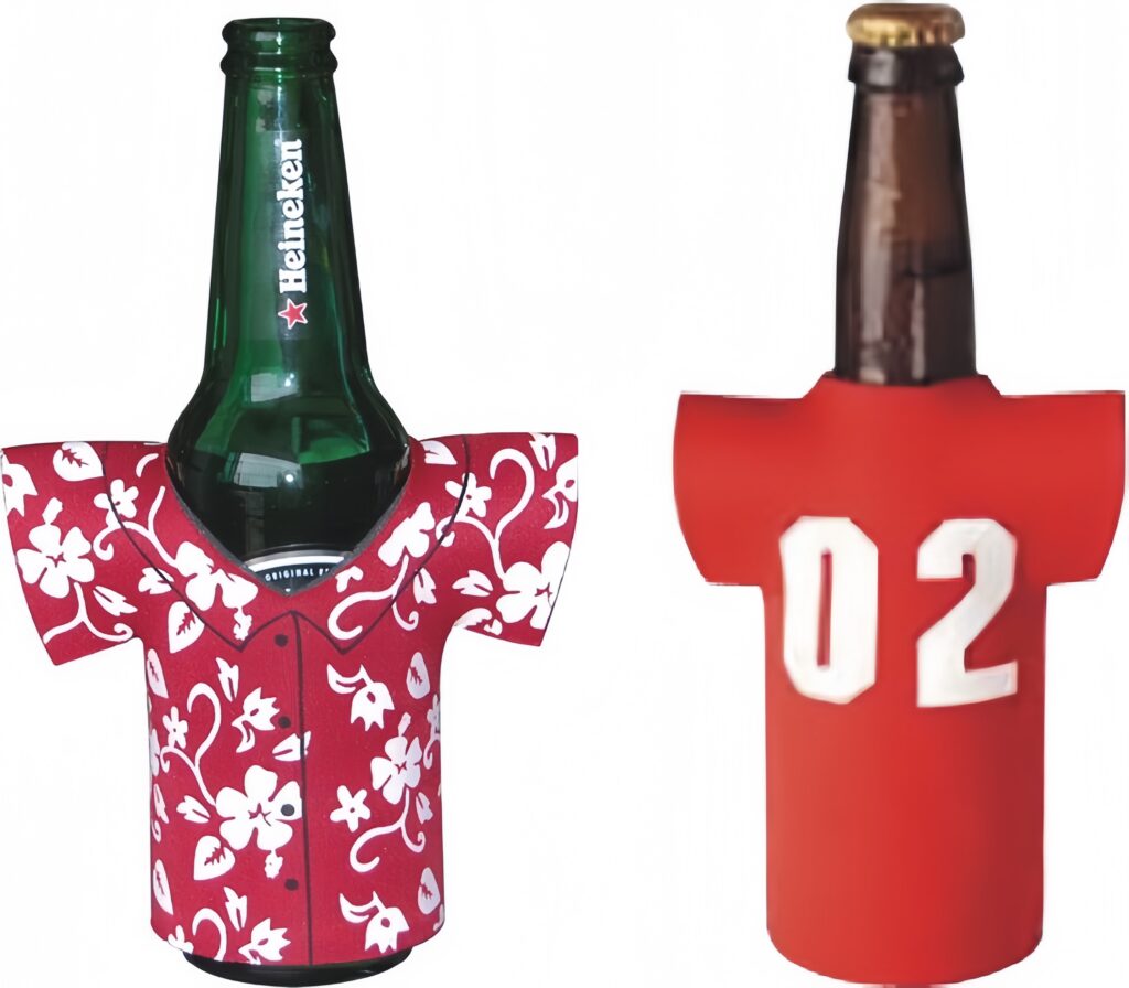 - T-Shirt Shaped Bottle Jackets: A fun, sports-themed design that mimics a jersey—a high-demand item for fan gear customization.